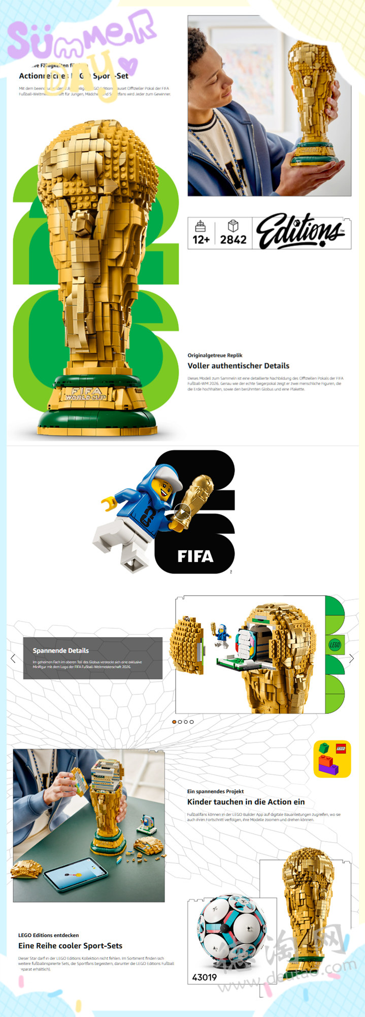 【这下谁都能举起大力神杯了!LEGO Editions FIFA世界杯官方奖杯 亚马逊自营款特价仅134欧!】