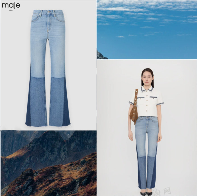• 【Maje 复古拼接牛仔裤 折后仅125欧,原价245欧!】 深浅不同的牛仔布拼接而成,从膝下自然展开的喇叭裤型,带着70年代的复古影子,却被重新打磨得更加利落现代。后腰皮质标牌低调点缀,经典五袋结构(侧袋+后袋)回归牛仔本源,让整条裤子既有复古味道,又不过时。