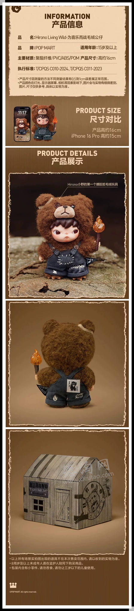 【🐻每一个细节都藏着野性与温柔!POP MART Hirono Living Wild为喜乐而战毛绒公仔 亚马逊官方店仅32欧!】穿上熊熊装、拿着火把,Hirono小野准备勇敢出发啦!这只不只是可爱,是在告诉我们:就算害怕,也可以慢慢变勇敢!盘踞深处的“黑影”或许是没有出口的愤怒,深夜无解的焦虑,亦或是积雪版的孤独。当学会倾听它的低鸣,才真正读懂自己。还有超有质感的小木屋包装,摆着超有感~喜欢收藏、喜欢小野的你千万别错过。