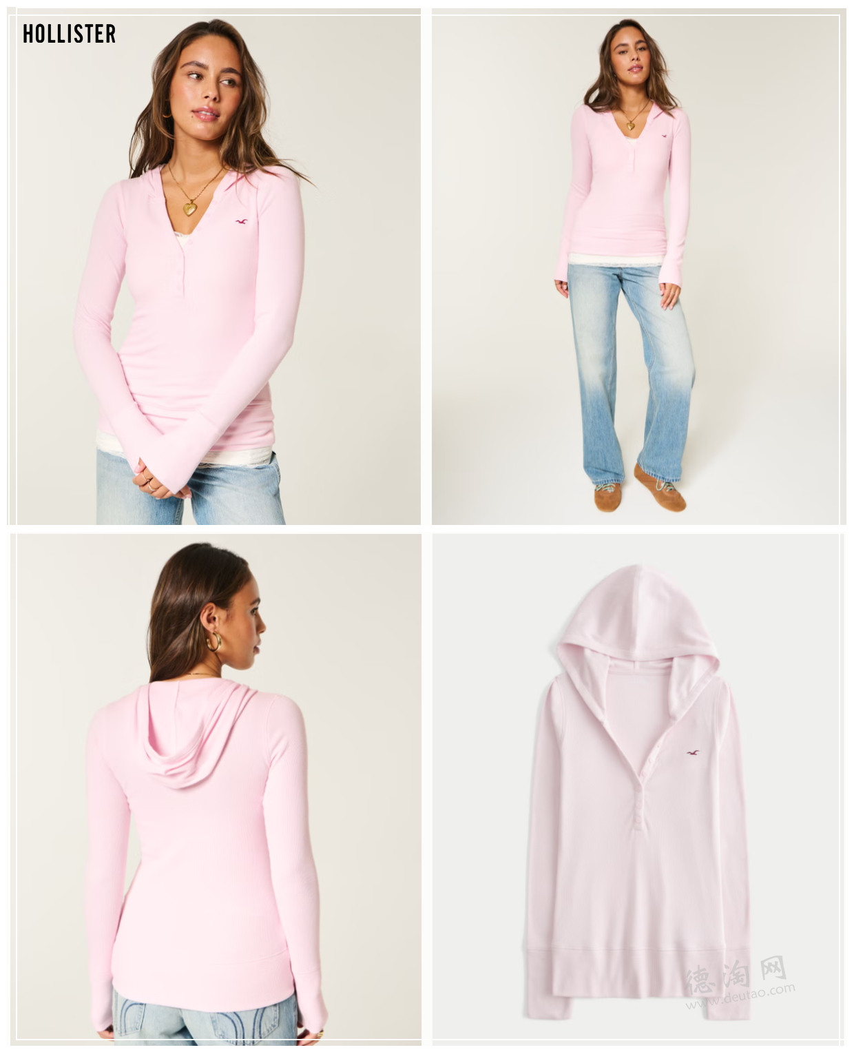 •【Hollister Co. 连帽长袖上衣 折上折仅16欧!原价29欧!】 特别美式的一款薄卫衣!把长袖T恤的随性感和连帽卫衣的舒适度融合在一起,一年四季都能反复穿的基础款。柔软亲肤,上身轻松不拘束,经典纽扣门襟,休闲中带点层次感。长袖设计,适合换季和秋冬叠穿。连帽设计,日常单穿更有少年感,叠搭更有层次感。