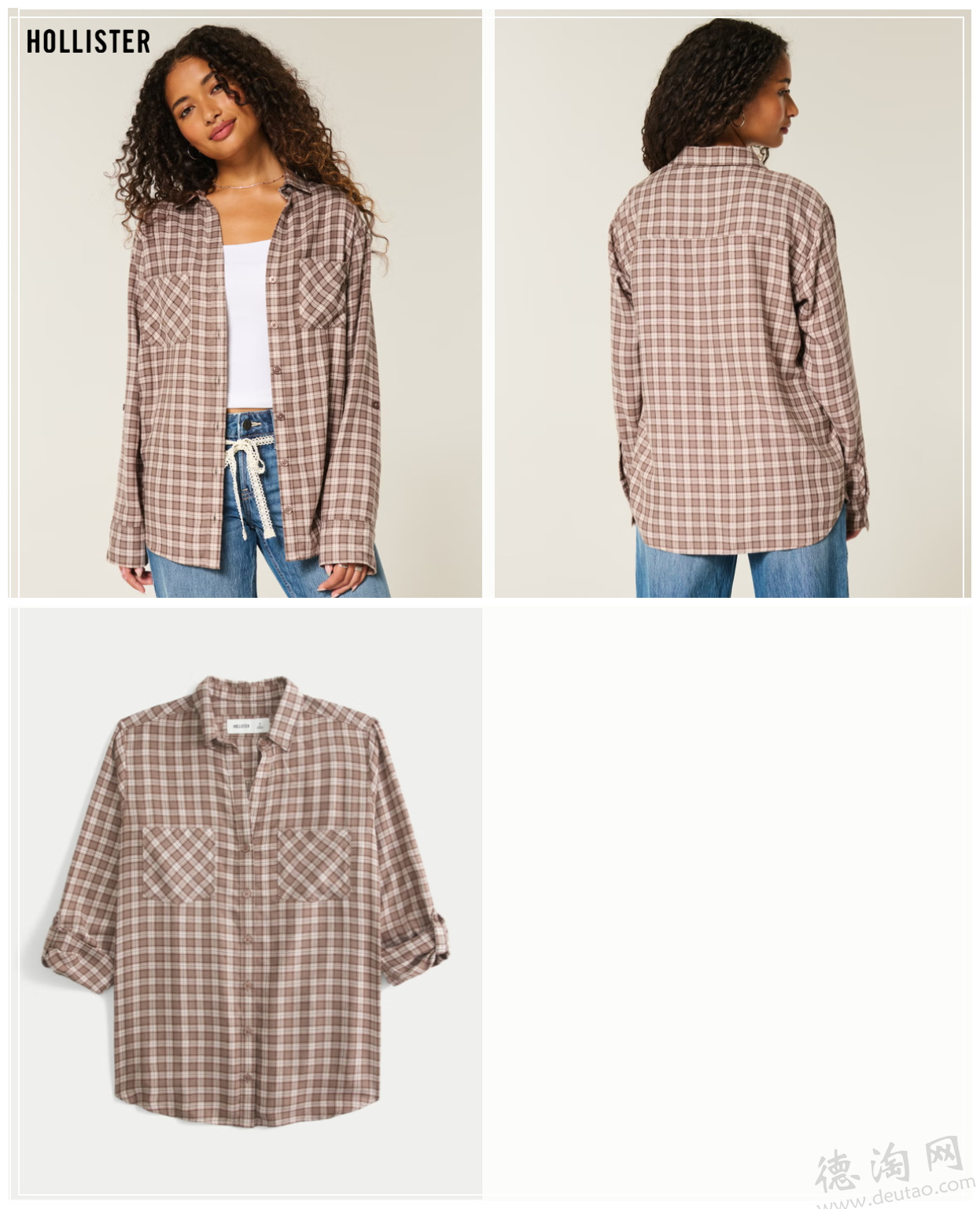 •【Hollister Co. 宽松法兰绒衬衫 特价仅18欧!原价45欧!】 冬天就是格纹的季节,无论是格纹外套、格纹衬衫、格纹裤,市面上都超多,而且格纹的单品就是很简单又百搭,随便配什么基本上都不太会出错!柔软、随性、好搭,随手一穿就是松弛感。这款法兰绒衬衫采用亲肤顺滑的面料,触感轻柔不扎肤,宽松版型自带慵懒氛围,单穿或当外套都很合适。