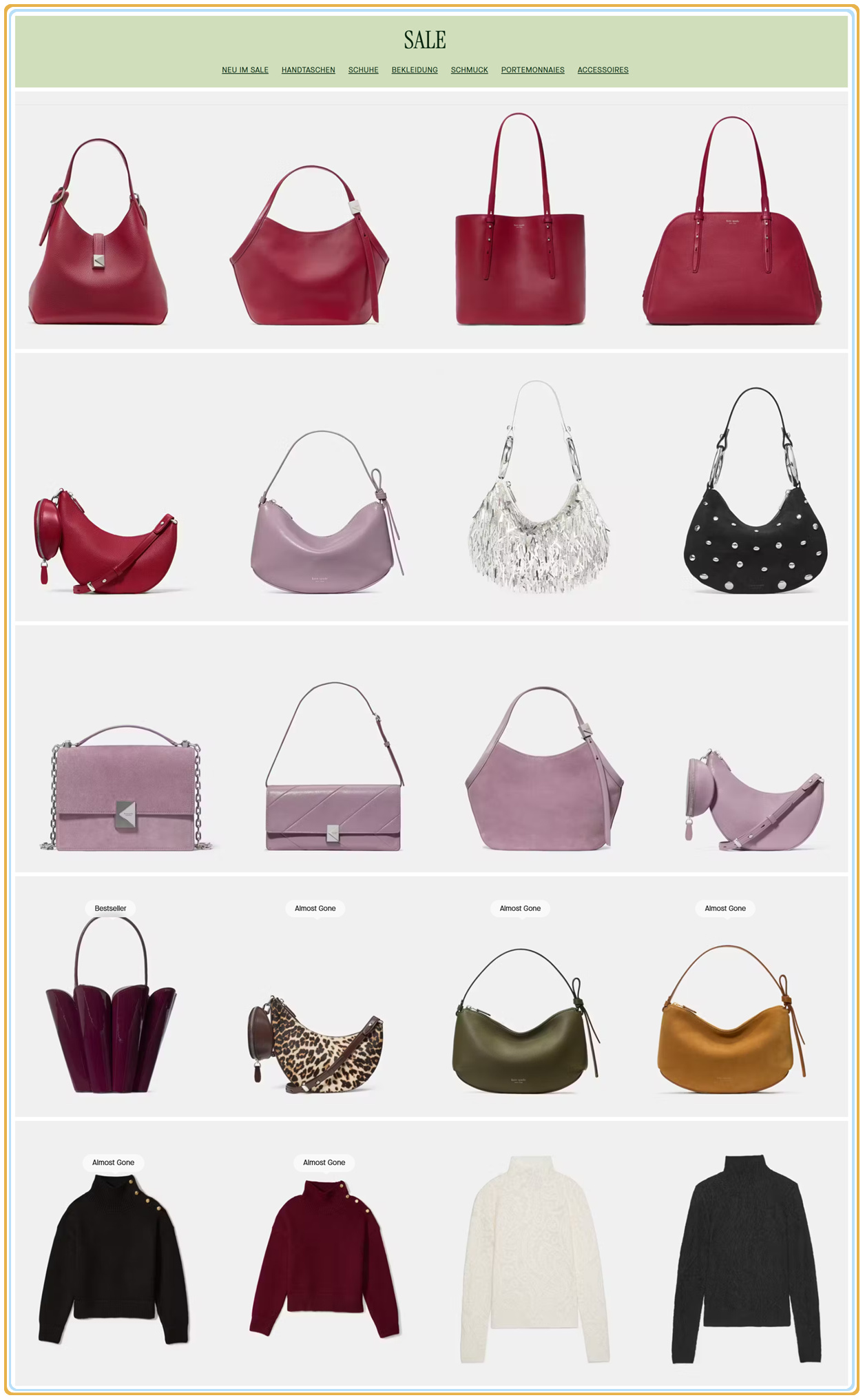 Kate Spade 作为国际知名轻奢品牌,一直以俏皮设计、精致细节与多功能性赢得全球粉丝喜爱。折扣区不仅有经典款式,更有季节新品和联名款入场,让你轻松提升衣橱质感又不伤钱包!