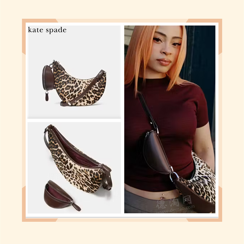 【Kate spade 豹纹斜挎包 折后仅185欧!原价375欧!】 一只包,至少四种背法。豹纹马毛质感皮革,野性不张扬,复古又摩登,轻松点亮全身造型。可拆卸双包设计,主包+Mini小包,主包大小足够放 iPhone Max,小包包可放 银行卡钥匙AirPods等。自由组合,随心切换风格。金色做旧质感五金,低调奢感,细节控必爱。