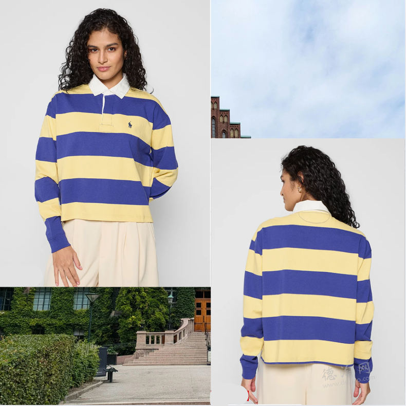 • 【Polo Ralph Lauren 条纹长袖Polo衫 史低价折后仅80欧,原价199欧!】 多彩的学院风配色和宽松直筒剪裁,呈现休闲格调与现代松弛感。经典Polo翻领,方便叠穿毛衣或马甲,勾勒具有层次感的上半身线条。浅蓝搭配浅黄的条纹带来轻学院调性,活泼却不跳脱。宽松直筒版型轻松遮肉,打造无压力松弛感。