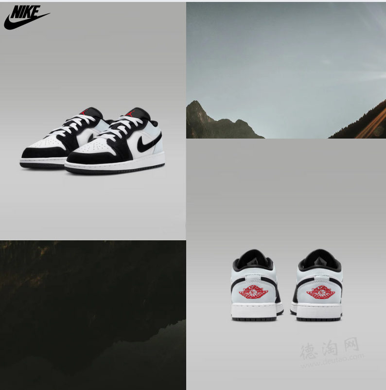 【Nike Air Force 1 熊猫配色 全场75折仅111欧!】 自熊猫Dunk火了后,黑白配色的球鞋人气也是不断升温,除了Dunk外最受欢迎的就是AJ1了。整个鞋面由黑白色皮革制成,又是大家熟悉的熊猫配色,无论什么风格的裤子都能驾驭,低帮造型上脚也更加方便。。搭配Swoosh、Jumpman、Air Jordan翅膀标志等细节完善整体设计。