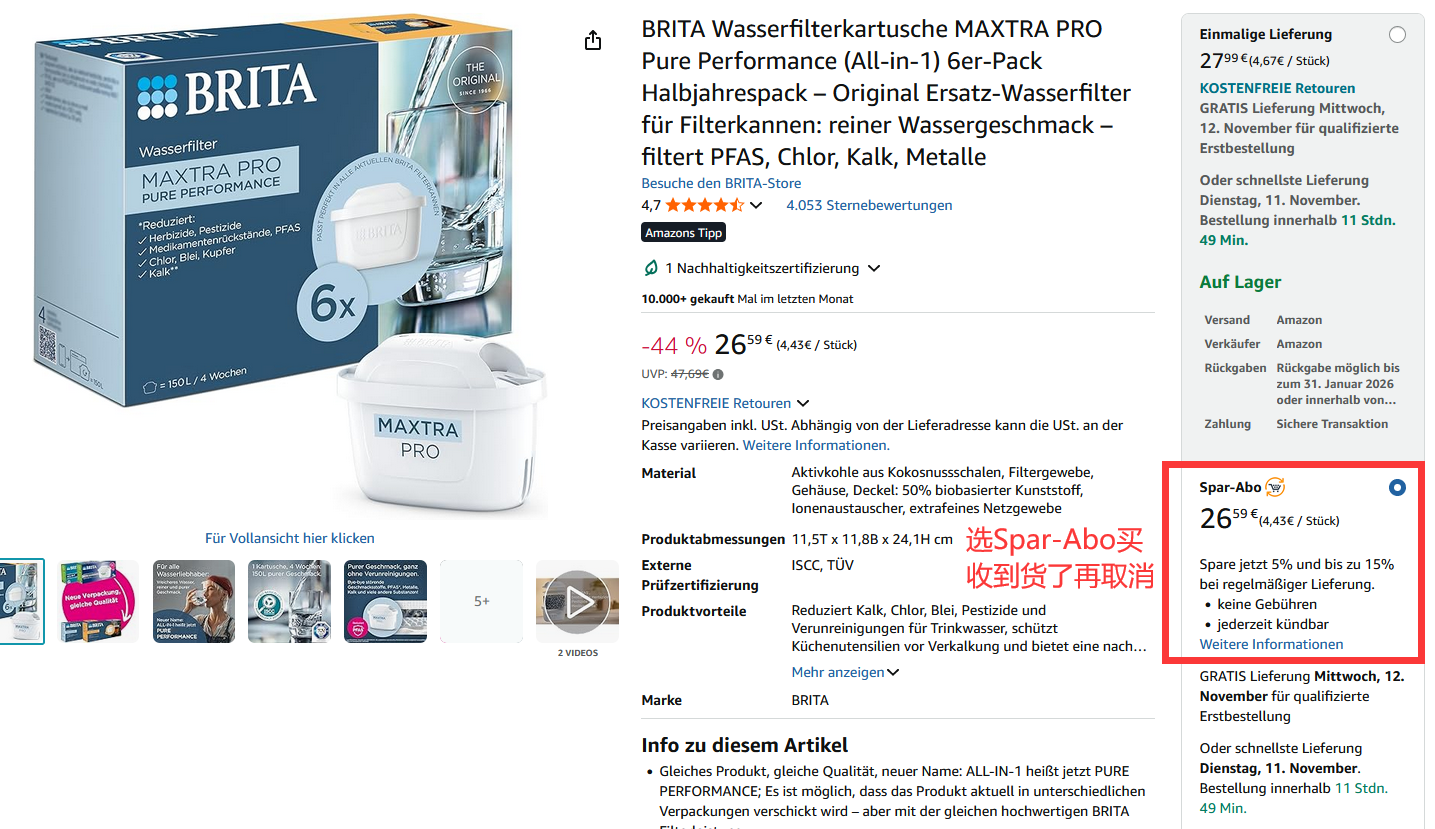 【降价赶快囤起来!Brita滤芯12枚一年装 特价仅售49.99欧啦!!!】德国BRITA碧然德的滤水壶和滤芯,每个家庭都应该备一个,尤其是有娃之家。毕竟自来水直接饮用,现在还是太不让人放心了。滤芯一个月一换,是家里的易耗品,趁着特价可以多囤,囤货不能手软!