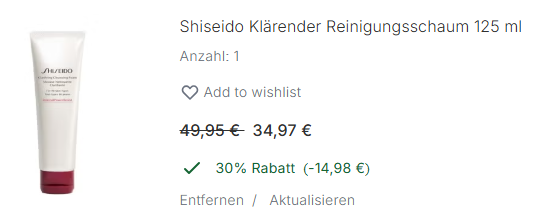 ★ Shiseido/资生堂 肌活净颜洁面 折后仅34欧!