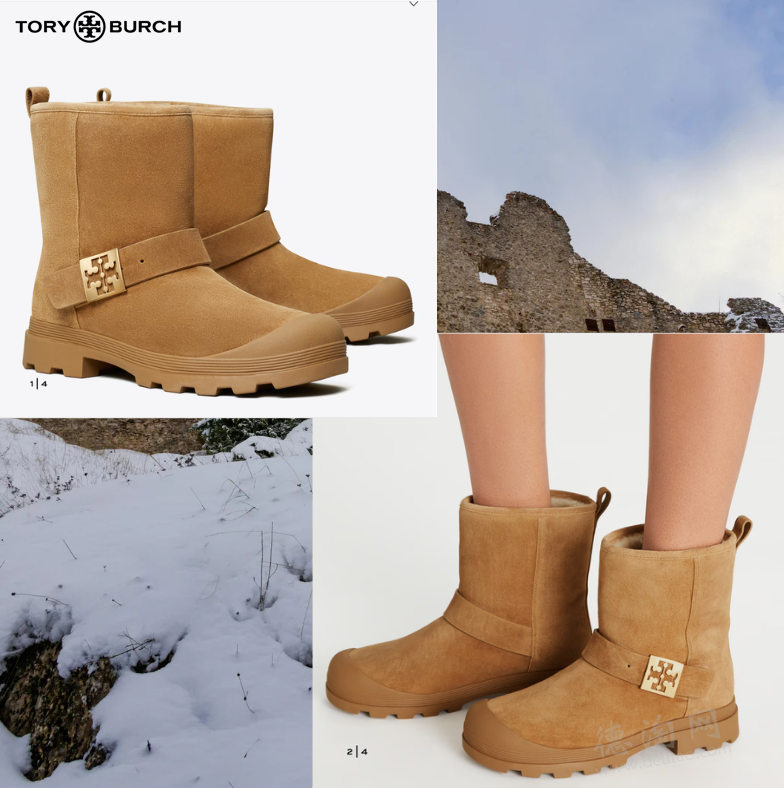 ❤【Tory Burch MELLOW羊毛内里雪地短靴 原价540欧,折后265欧!】 雪地靴靴将舒适、保暖与低调奢感融为一体。甄选柔软麂皮打造靴身,内里铺陈细腻的澳洲羊羔毛,搭配羊毛填充鞋床,上脚瞬间被温暖包裹。厚实却不笨重的橡胶防滑大底,在冬日街头提供稳定支撑,同时悄然拉长身形比例。后跟拉环设计,方便穿脱。