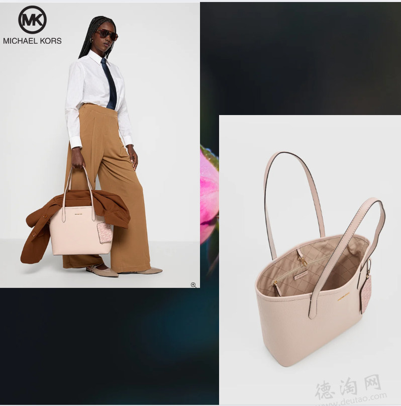 • 【Michael Kors 樱花粉托特包 折后仅129欧,原价350欧!】 他家最受欢迎的大托特包,以低饱和樱花粉调呈现,褪去稚气,转而展现一种温柔而笃定的都市气质,也摆脱了妈妈包的刻板印象。同时还附赠一个徽标独立小袋,收纳更加实用!简洁的托特廓形强调实用与比例,卡扣式开合让日常取放更显利落。包内空间开阔,让随身物品保持有序。