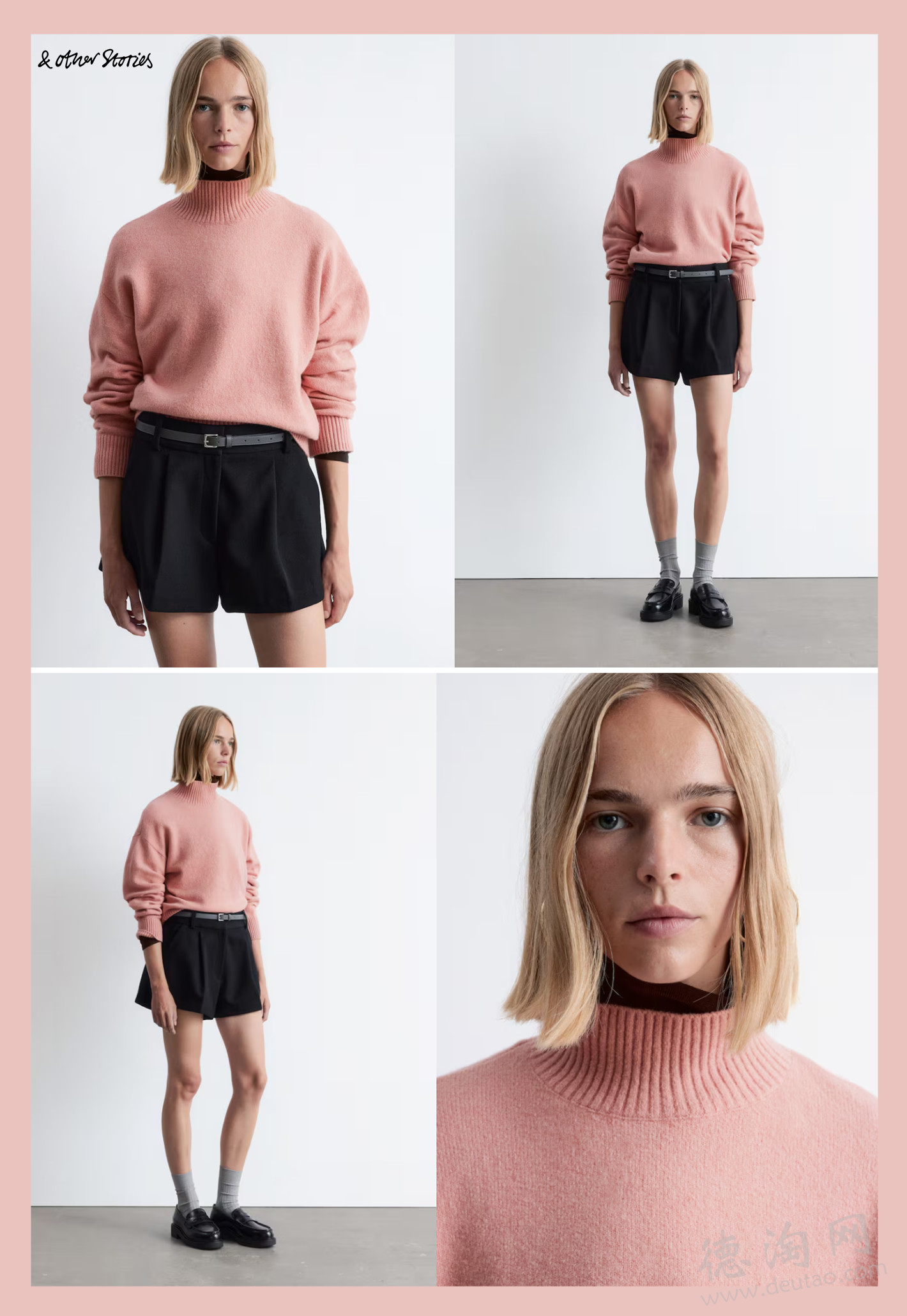 ★【& other stories 🌷半高领针织毛衣 特价仅39欧!】 年关很衬肤色的毛衣!温柔又具有包容性的桃粉色柔软针织长袖毛衣,配有立体高领设计,低落肩剪裁带来慵懒松弛气质。袖口与下摆均采用罗纹收边,细节显得更加利落精巧。略微宽松版型便于叠穿,轻松契合日常与通勤场景。