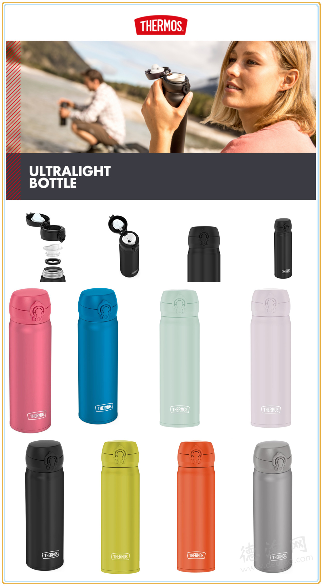 【让喝水也变成享受!THERMOS 超轻保温杯500ml 多色可选,特价仅22欧起!】膳魔师家的保温杯比同类产品轻了近一半!包里随便一塞,完全感觉不到它的存在。独特的安全锁设计,有效防止意外开启。随手放进包里,再也不用担心文件、化妆品遭殃了。10小时保热,24小时保冷,长效陪伴。特别设计的饮水口,喝热水时不会被烫到,小口慢饮,非常优雅。坚固的18/8不锈钢材质,耐用抗造。各种颜色拿在手上就是一道靓丽的风景线,每次喝水都觉得心情美美哒!