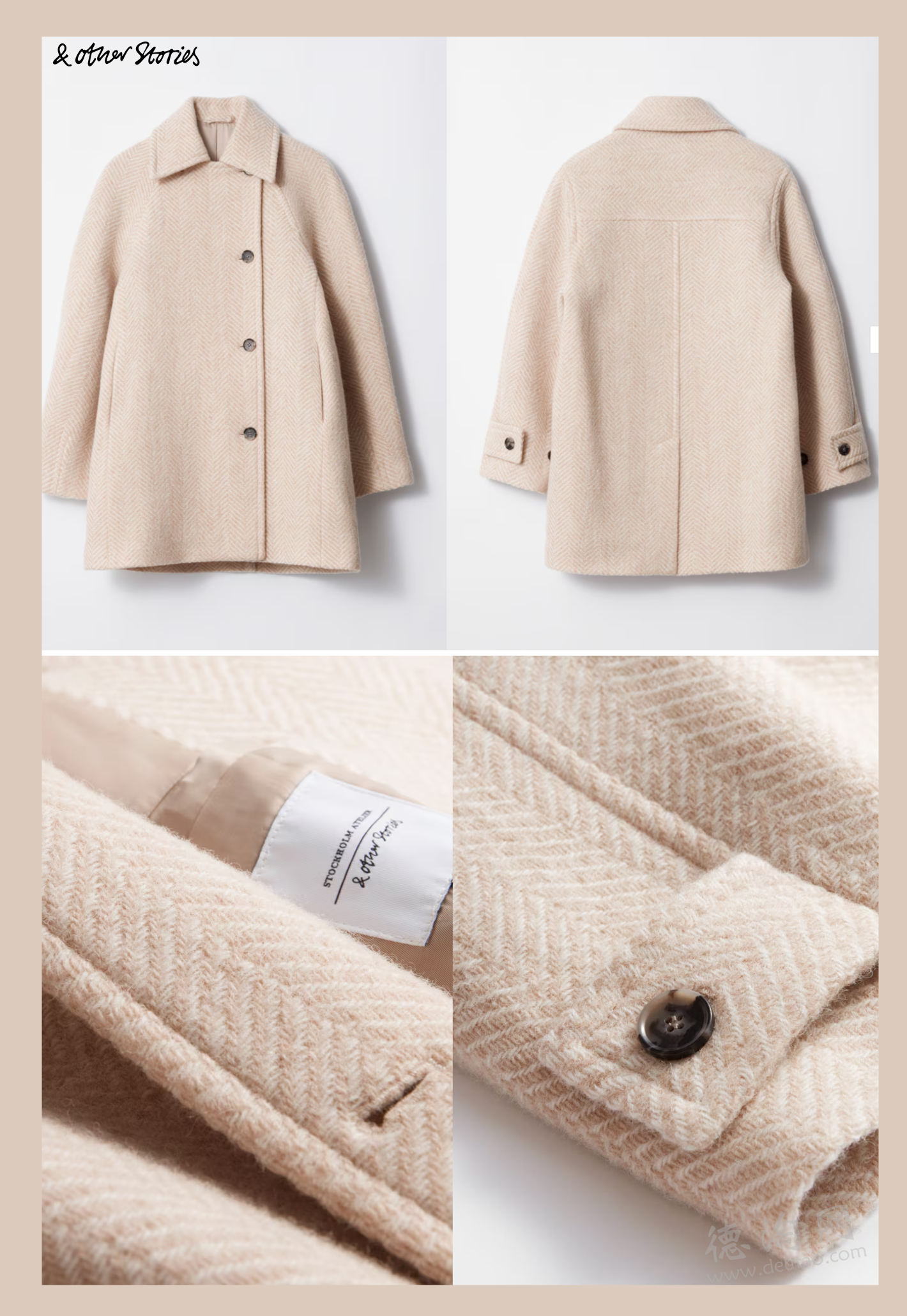 ★【& other stories 🧵单排扣羊毛大衣 特价仅125欧!】 温柔软妹风的大衣,纱绘子同款!这款大衣采用百分百羊毛材质,舒适宽松廓形,搭配叠门襟设计与宽大领型,3颗正装纽扣,利落收束轮廓,在静谧轮廓中注入力量感。柔和肩线让整体气场更显松弛与高级。