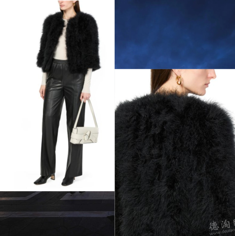 【YVES SALOMON 短款羽饰夹克 限时折上折仅409欧!】品牌自1910年起便投身于毛皮事业,作为供货商给个大奢牌供应皮草。将柔软绒羽的丰盈触感与极简廓形巧妙融合,呈现出既优雅又前卫的时尚态度。无领设计勾勒利落线条,使整体更加轻盈干练;短款比例拉伸身形。细腻羽毛在光影间微微浮动,散发一种不张扬却难以忽视的奢华质感。无论披在长裙之上,或叠搭衬衫与高腰裤,它都能瞬间提升整体造型。
