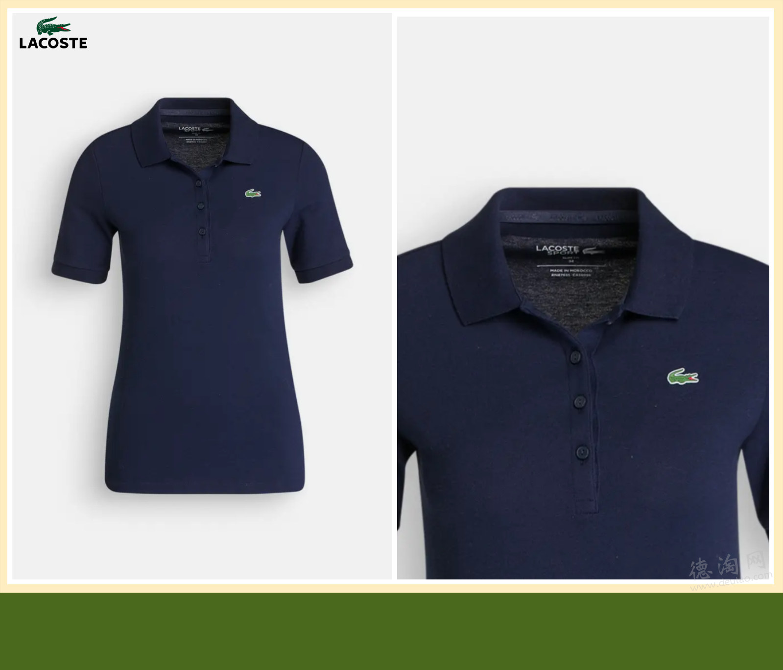 ❤【Lacoste 海军蓝POLO短袖衫 折上折仅59欧,原价95欧!】 男女同款!深蓝色调介于正式与休闲之间,无论日常还是通勤,都能轻松融入各种场景。修身版型贴合身体线条,不宽不松,恰到好处地展现身形比例。细腻透气的珠地织法,让面料更有结构感,同时保持良好的舒适度。既有运动基因,又不失精致感。