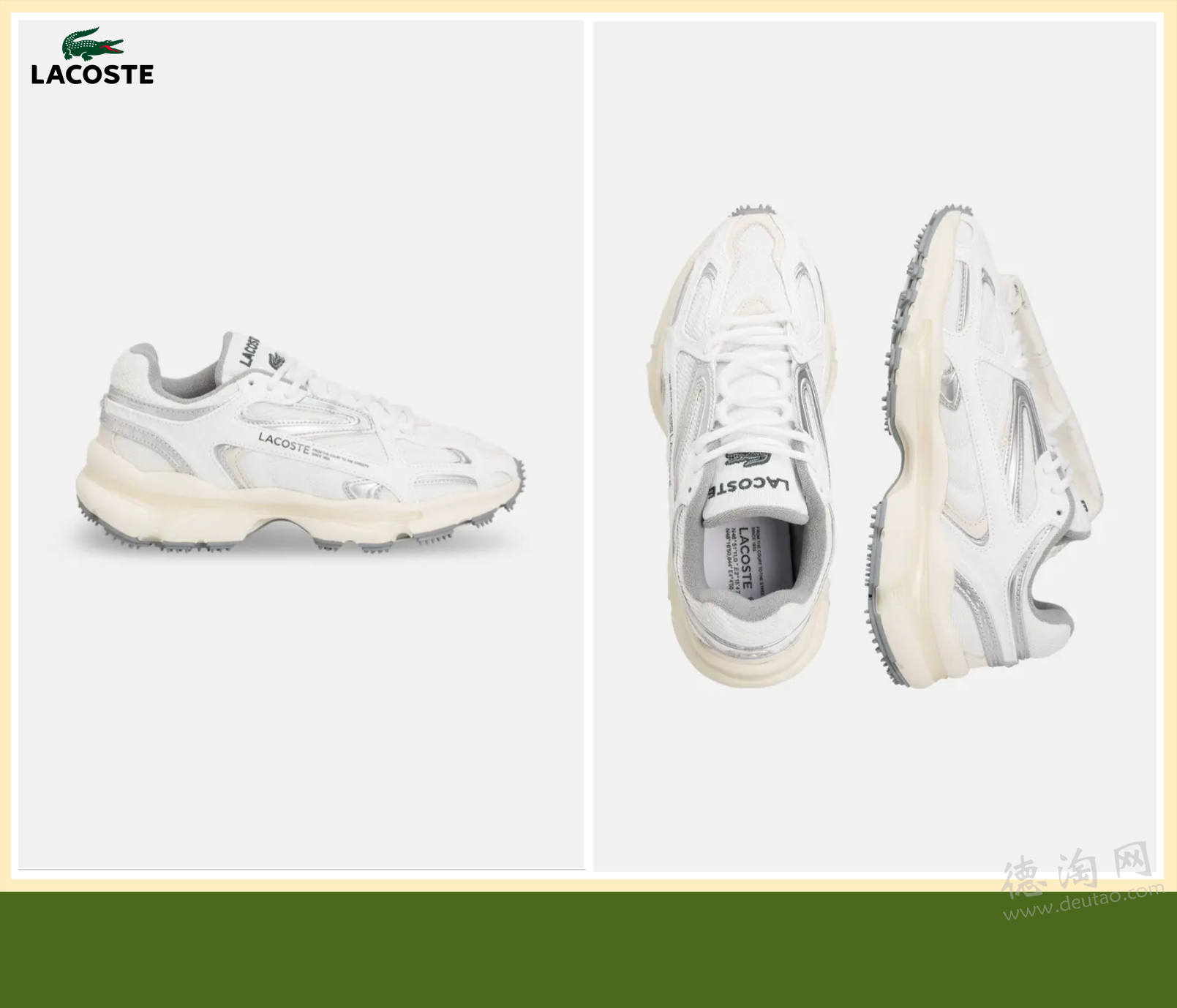 ❤【Lacoste 白色老爹鞋 折上折仅76欧,原价160欧!】 同样是热门款,多种材质拼接,但干净显质感。鞋面细致的穿孔设计,不仅提升透气性,也在视觉上增加层次,让整体不再单调。鞋口加厚填充,长时间行走也能保持轻松脚感。平底设计搭配稳定橡胶外底,让每一步都更自然。