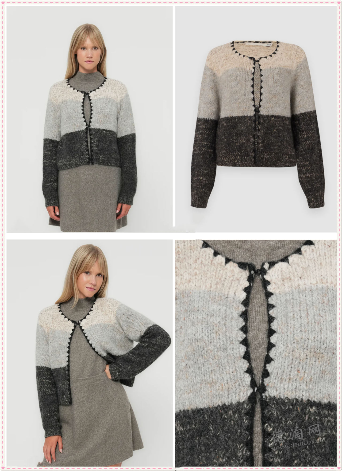 • 【Vero Moda 圆领拼色针织开衫 折后仅25欧,原价59欧!】 柔和的米色质感,加入轻微的混色毛线多了一层细腻层次,不张扬,却很显质感。经典圆领,去掉多余修饰,让整体更通勤友好。无论单穿还是内搭衬衫,都能保持一种清爽的秩序感。