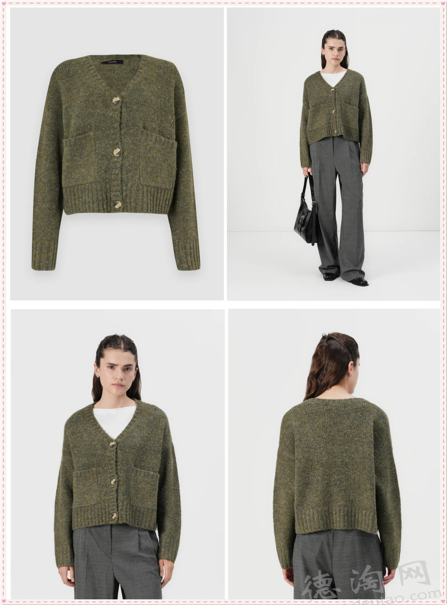 • 【Maje 拼色针织开衫 折后仅125欧,原价265欧!】 在极简黑色中加入白色锁边层次,让整体更有设计感,而不是单调。恰到好处的短款长度,落在腰线位置,视觉上自然拉长腿部比例。利落的翻领让针织不再只是温柔单品,而多了一层结构感与正式感。柔软与挺括在这里达到平衡。