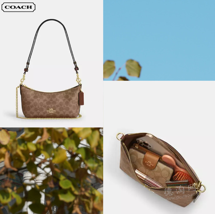 【Coach Caitlin腋下单肩包 折后仅229欧!原价355欧!】 他家最时髦的一款it bag。标志性涂层帆布搭配细腻光面皮革,在耐用与质感之间找到平衡。既保留品牌辨识度,又不过分张扬。约25×13× 9cm的尺寸,刚好容纳手机、卡片与随身物品。双肩带设计,风格自由切换,可拆卸短肩带日常随性单肩,链条肩带晚间精致氛围。
