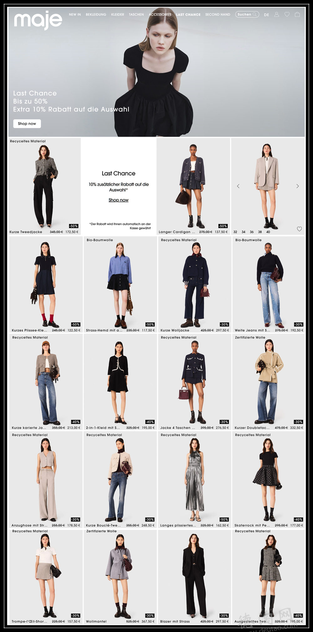 【诠释法式轻奢魅力!Claudie Pierlot 官网大促,低至2折+再9折!黑色长袖丝绒连衣裙2折+再9折仅53欧,秋冬打底穿真·美艳黑天鹅🦢】Claudie Pierlot向来以经典,充满法式气息的设计闻名。品牌30年的历史使其演变为法国女性生活中不可或缺的一部分。鲜明的品牌设计理念诠释着巴黎女性甜美又不失现代优雅格调的浪漫风姿;上乘的材质,精致的设计细节以及印花,蝴蝶结,条纹,蕾丝等经典设计,以及洋装和西装外套的混搭风格让每一个女孩都能在Claudie Pierlot里发现属于自己的美丽和性感。