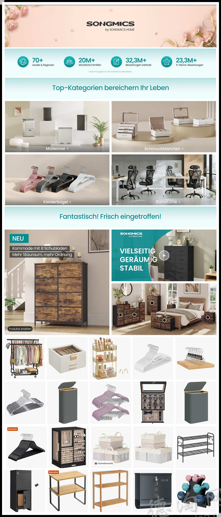 【提升幸福感,好用的家居必不可少!高性价比的德亚家具品牌SONGMICS 全场低至7.1折,带快充的升降办公桌仅143欧!亚马逊送货到家!】SONGMICS是德国的线上的家居品牌,和宜家的价格差不多,但是设计和风格更加多样。精选人气好用的居家用具,品质有目共睹,让家居生活更加整洁的各种样式的橱柜、品位一流又舒适的桌椅、童趣十足的可爱床具等等,质量有保障,给居家生活带来更多便利和舒心体验!对于短期租房党,场内超多简易鞋架,衣柜等随拆随装的租房党好物,各式各样的便捷收纳也值得一看!销量在德亚同类产品中数一数二,质量和售后都有保证哦!