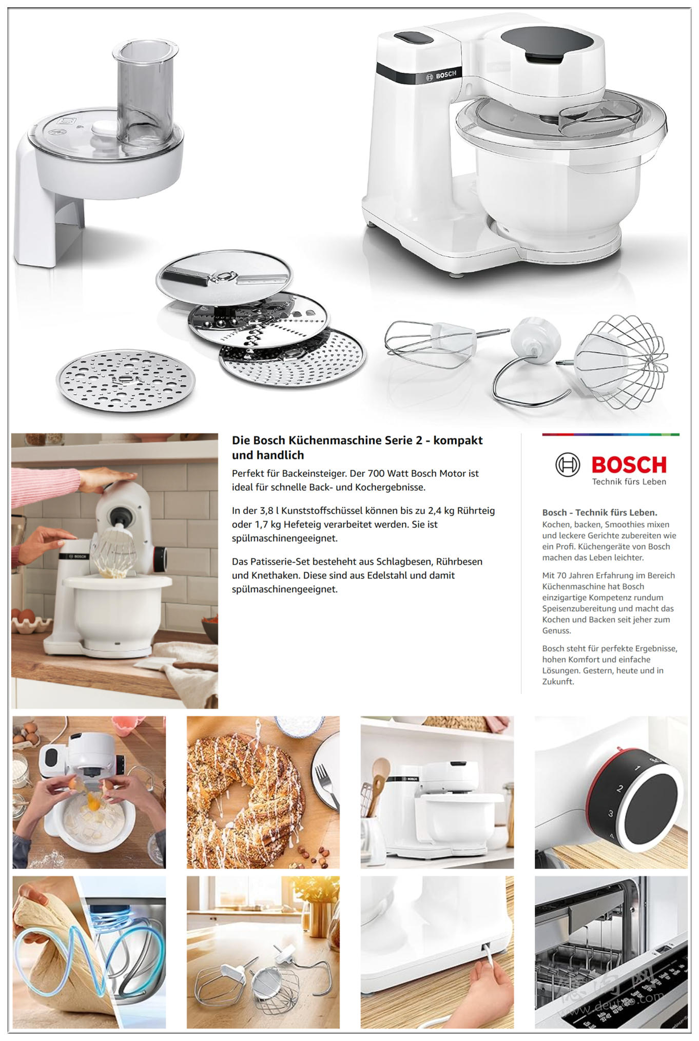 实现甜品面点自由!Bosch 博世 Serie 2厨师机 原价189欧!限时特价仅79欧!