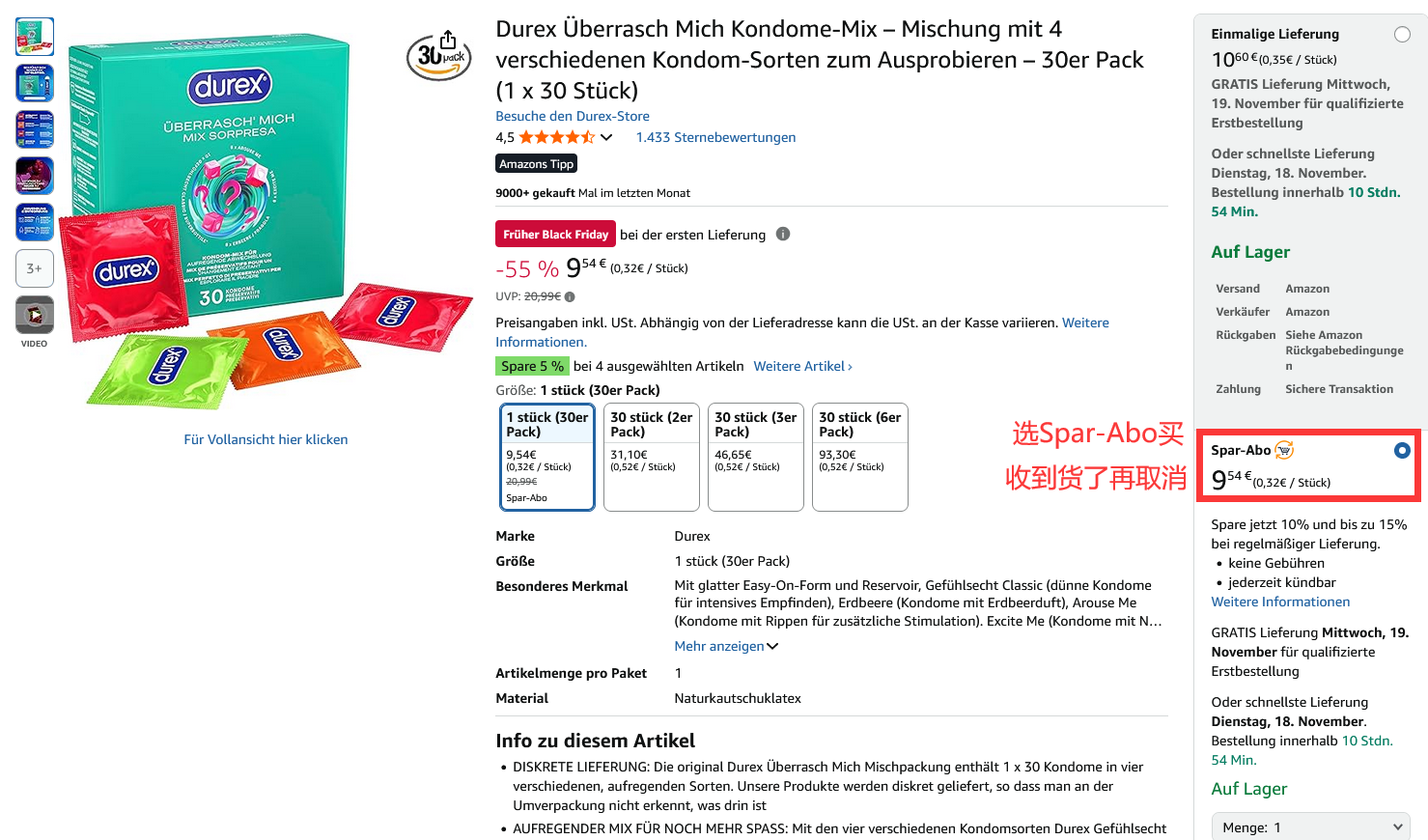 【要安全更要乐趣!Durex杜蕾斯 Surprise Me避孕套混合装30只 黑五特价仅9欧!!!平均一只仅0.32欧!】