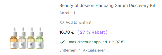 ★ 输入优惠码方法:选择商品,放入购物车,点击黑色按钮(DEBIT/KREDIT或者Zur Kasse),跳转到支付页面,就会出现可以输入优惠码的页面!