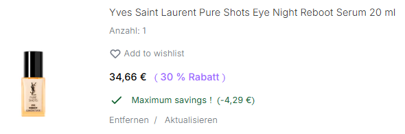 ★ YSL 夜皇后眼部精华液20ml 折后仅39欧!