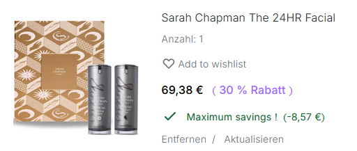 ★ 章小蕙贝嫂都在推荐!Sarah Chapman 日夜护肤两件套装 折上折仅69欧!