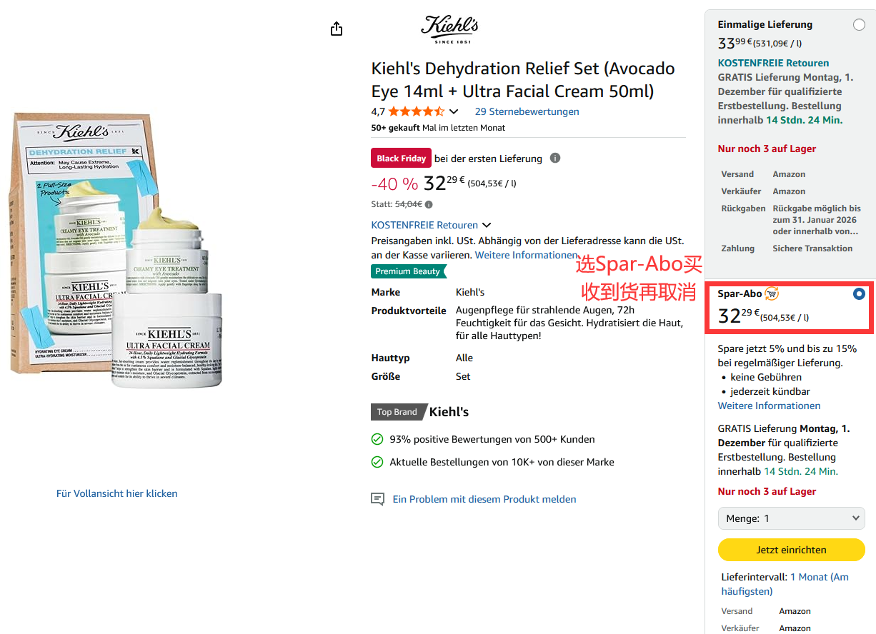 【保湿届纯元皇后!3.0版太香了!Kiehl’s/科颜氏 高保湿套装 黑五特价仅32欧!!!总价值72欧!】