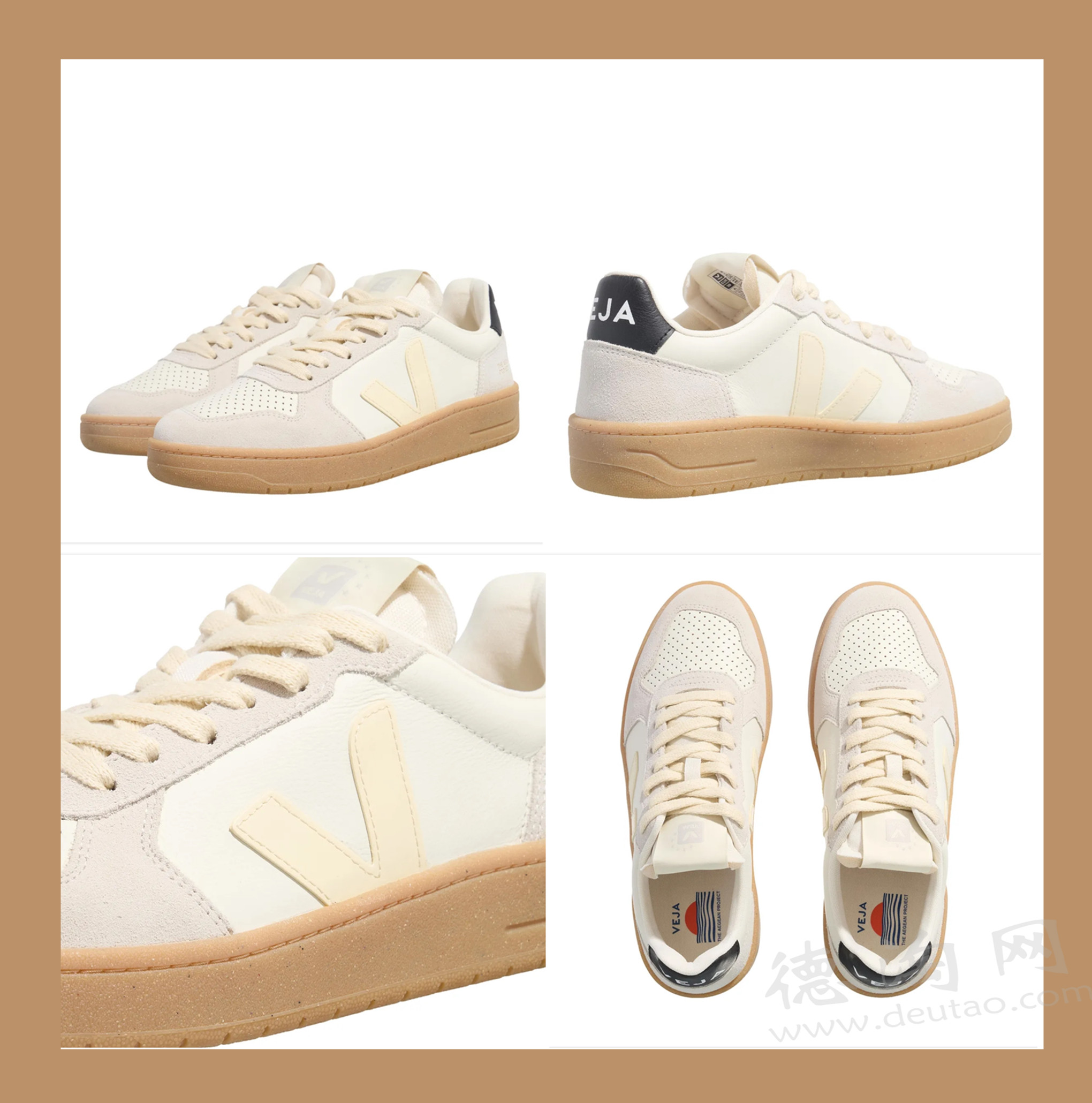 【Veja V-82皮革小白鞋 黑五折上折仅124欧!】 低调却极具街头感以简约线条演绎都市轻运动风。鞋面由米白色皮革与织物拼接,辅以精致装饰缝线,细节体现高级感与环保理念。标志性 Logo点缀,低调中彰显辨识度。圆润鞋头设计配合舒适的平底鞋型与橡胶鞋底,长时间穿着依然轻松自在。