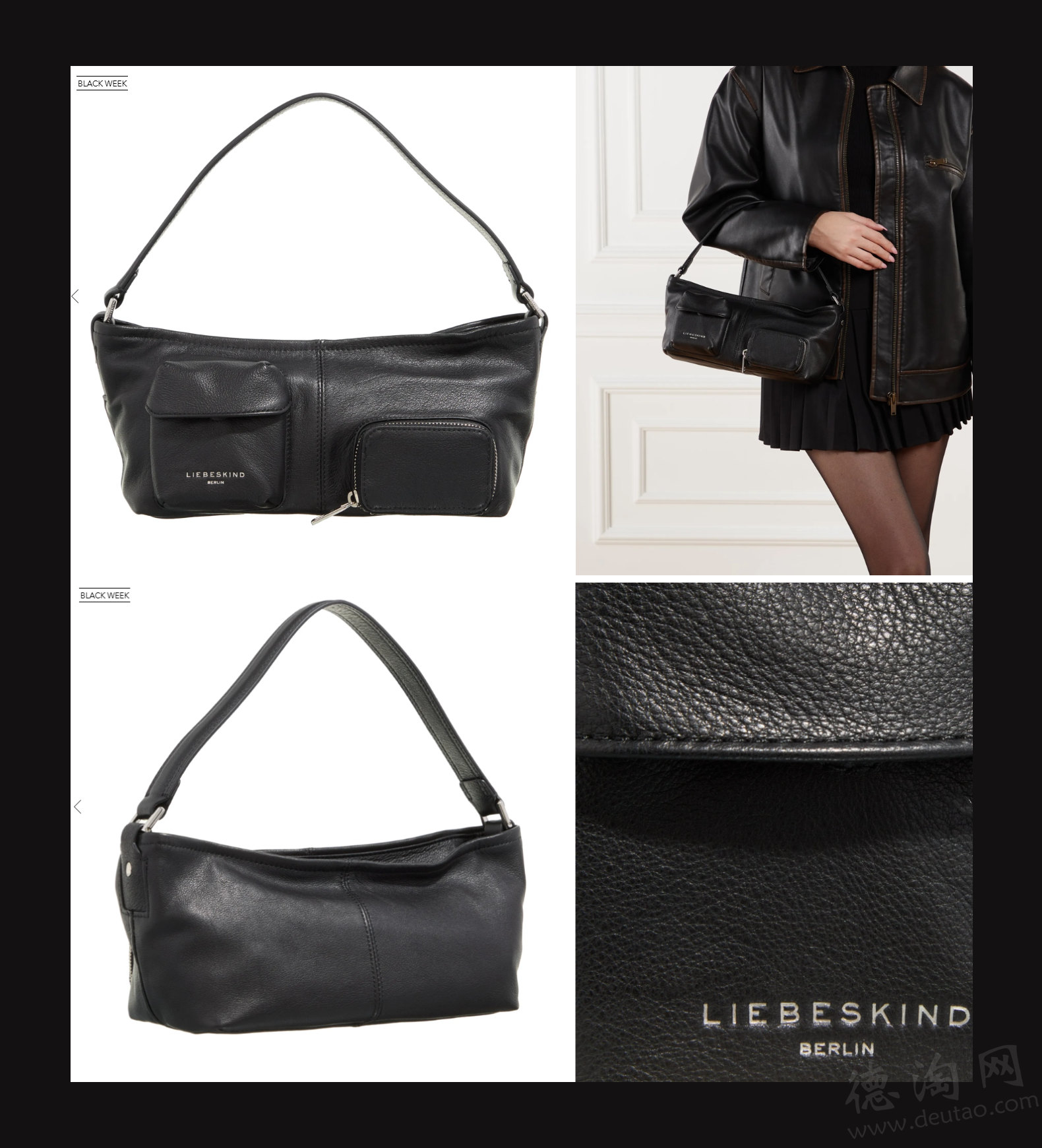 【Liebeskind Berlin Crossbody法棍包 黑五折上折仅95欧!】 精选黑色颗粒纹皮革,低调中自带质感,这款包形更加扁平,符合流行趋势!包身前带着两个不同容量和大小的前袋,容量空间可轻松容纳日常随身物品,并且肩带可调节长度,想要单肩、斜背都没问题!