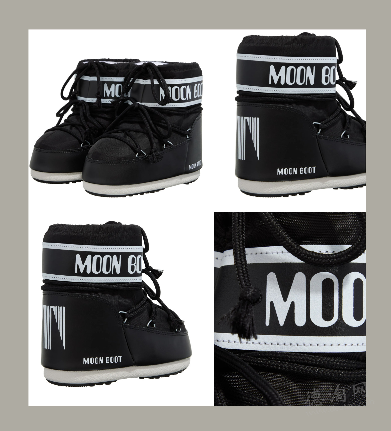 【Moonboot Mb月亮雪地靴 黑五折上折仅156欧!】 月亮靴独一无二的 Icon 受到 1969 年登月计画的启发,借鉴了高科技太空人装备,具有绝缘性能且配有轻质中底,橡胶胎面鞋底上设有吸盘,可提供可靠的地面控制,成为现代人在雪地中的实用配件。鞋面采用防水合成材料,光滑质感彰显现代感;标志性Logo压纹与银色Logo饰件点缀鞋身,低调中带品牌识别度。