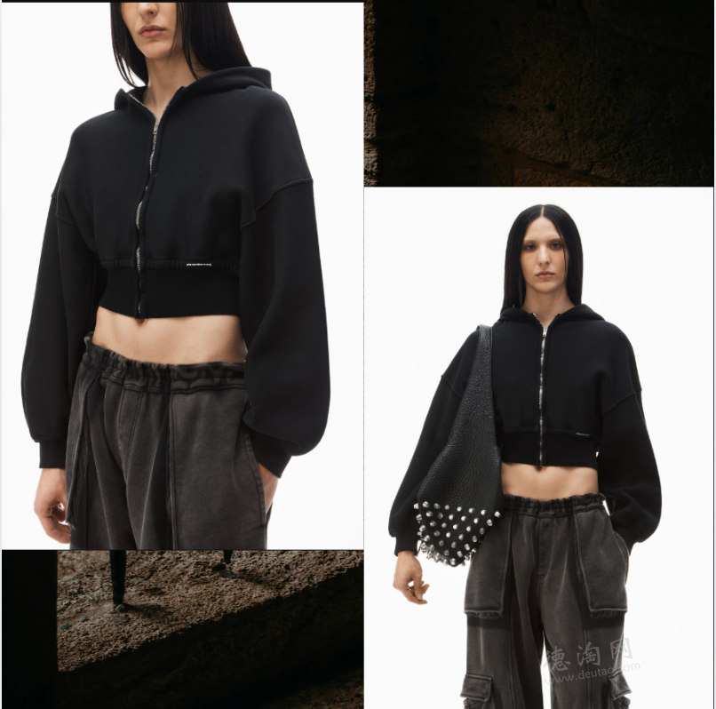 ❤【Alexander Wang/亚历山大·王 短款连帽外套 原价440欧,折后仅265欧!】 以褪色黑调呈现低调锋芒,采用棉质抓绒制成,触感轻柔却保持结构感。拉链处以波浪式横切设计强化视觉张力,罗纹下摆左侧点缀同色系低调 Logo,展现Alexander Wang标志性的冷感街头语言。短款比例轻松勾勒腰线,宽松肩线搭配收束腰身,在随性与利落之间取得精准平衡。无里衬设计让整件单品更轻盈、灵活,适合搭配高腰下装,打造帅气干练的日常造型。