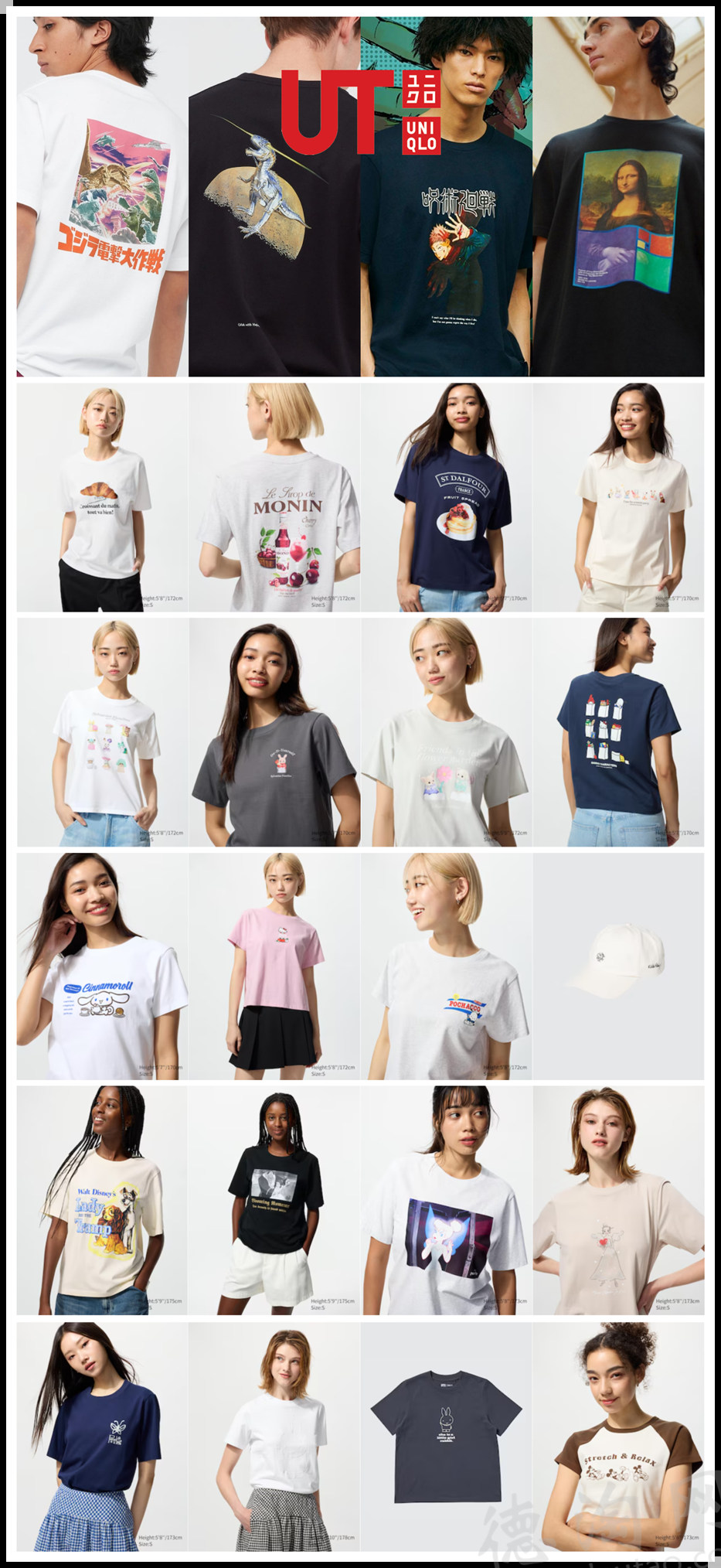 每次UT一出新款,总能稳稳当当地让年轻人掏空钱包,每一季人手抢个三四件都是常态。除了甄选新锐艺术家的作品、经典漫画角色,以及传统艺术作品这些常规方式,UT更是接连举行UT设计赛、UT展览、明星帮你挑 UT 线上营销等等。这其实是 UT 最好玩的一点,你既可以将自己最喜欢的艺术、文化、人物穿在身上。也有机会靠着一种更年轻的方式追求个性与自我价值。众多话题联名UT,不论大人或小孩皆可搭配,四季不退流行单品,夏日穿搭必备经典。也可以全家大小一起穿上亲子装,增添活泼氛围!