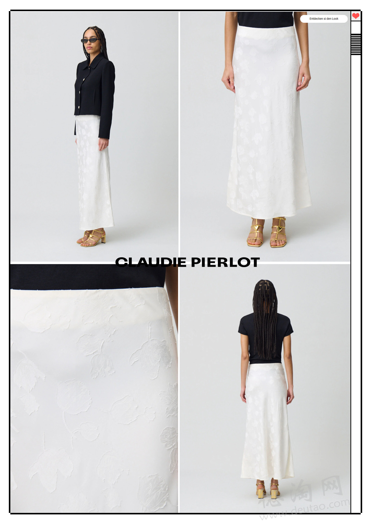 ❤【Claudie Pierlot 缎面印花半裙 折上折仅102欧!原价255欧!】 旋转行走都是优雅流光。丝滑柔亮的缎面搭配暗调白色印花,低调又高级,任何光线下都自带滤镜。鱼尾的版型,走起路来,裙摆像是被风温柔托起。高腰设计完美拉长比例,显腿长又显气质,微微收腰包臀,在在末端再散开的设计太有女人味了!