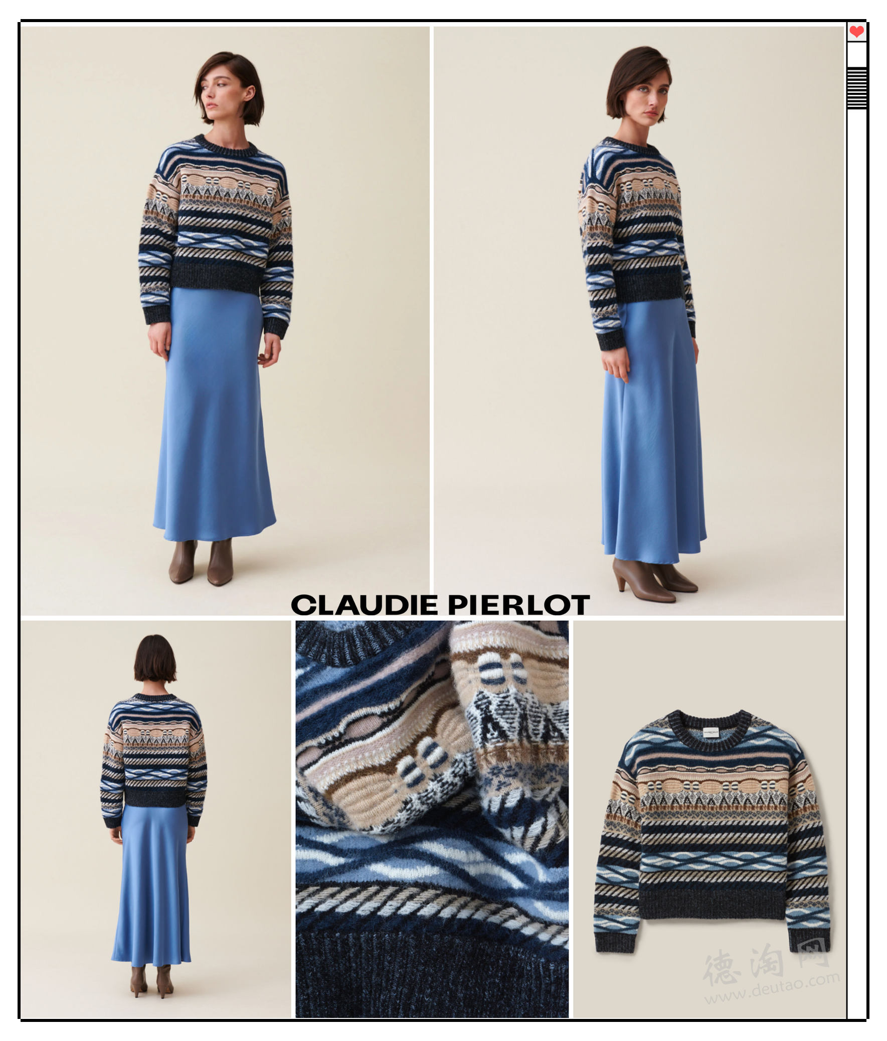 ❤【Claudie Pierlot 复古条纹短毛衣 8折仅96欧!】 秋冬最爱的针织单品非这件莫属——在胸部有一圈圈特别的花纹,具有强烈的北欧风格。肩部微宽,慵懒感满分,穿着舒适又显瘦。下摆、袖口和领口罗纹更贴合身形,随性又有层次感。穿上去大自然探索踏青,会发现身上的图案与周围的景色相得益彰、干净纯澈。