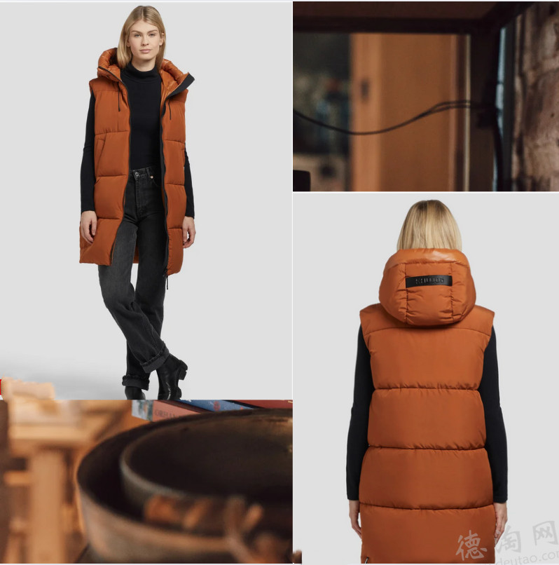 • 【Khujo 橙色中长款羽绒马甲 折后仅63欧,原价139欧!】 鲜明的橙色调,点亮冬季沉闷氛围。及膝的修长廓形,搭配直筒剪裁,塑造简约却极具存在感的造型。可调节抽绳帽兜与加厚内衬,赋予温暖守护。利落的无袖设计,穿在大衣里面亦或者搭配针织衫还是卫衣,皆能轻松驾驭。