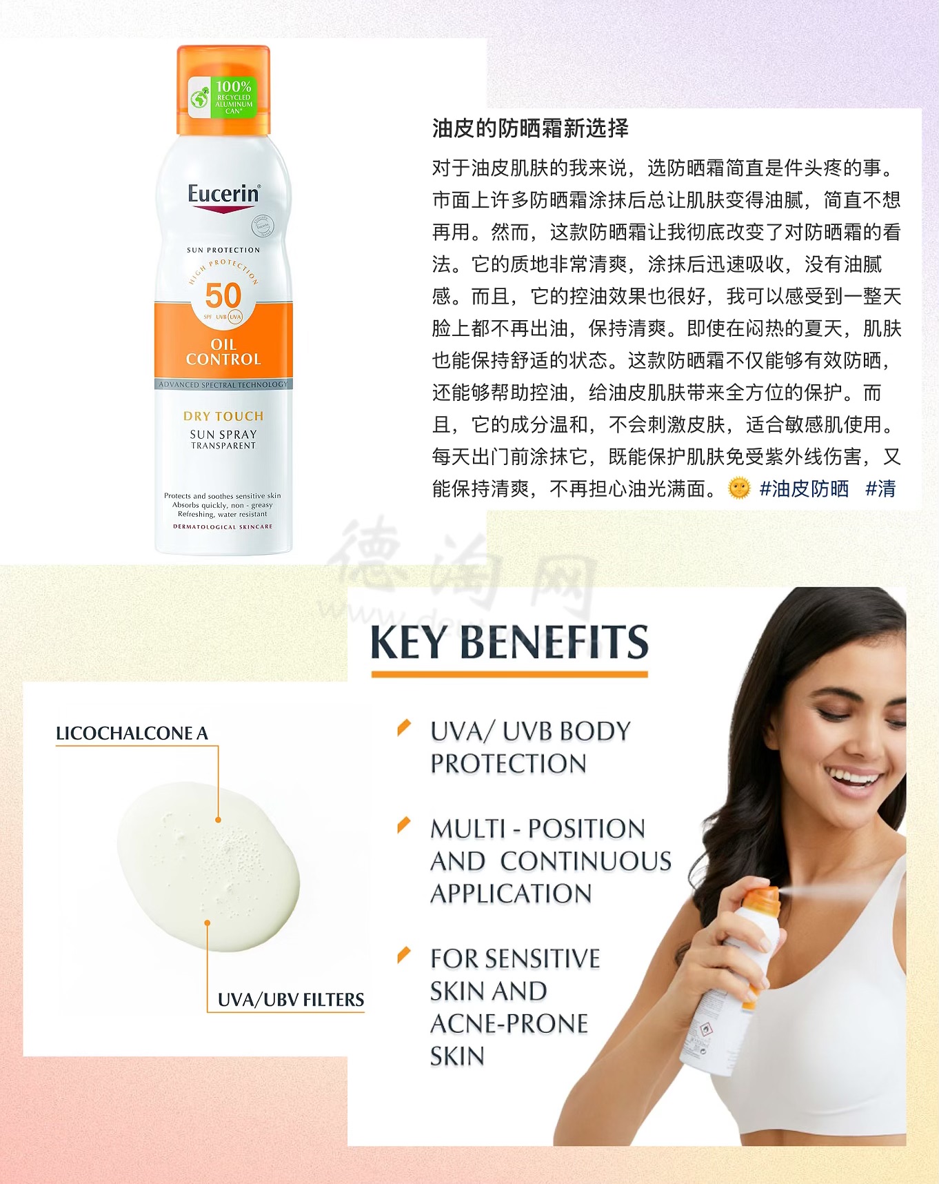 ★ EUCERIN/优色林 「敏肌透明防晒喷雾 SPF50」