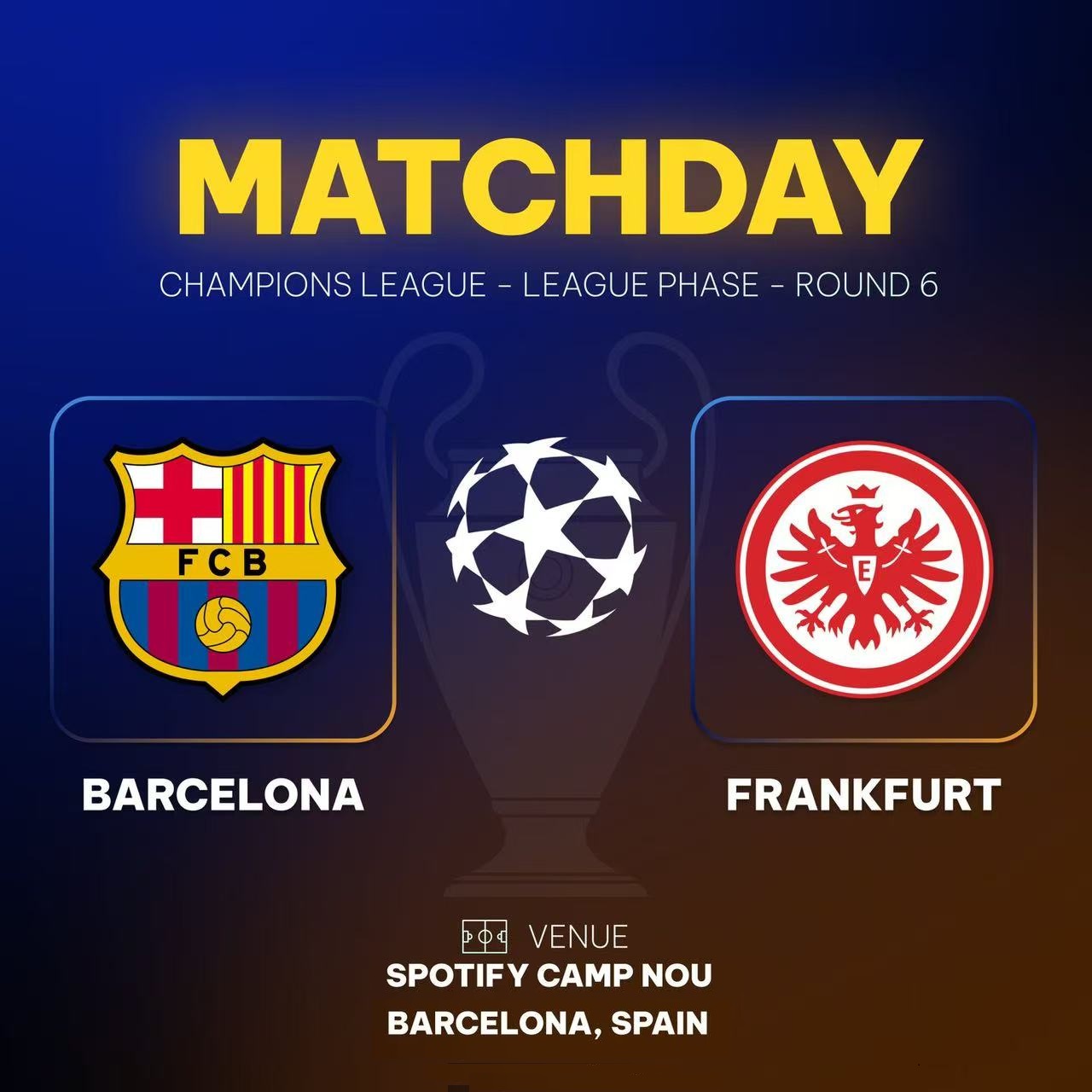 今天晚上21点欧冠焦点比赛,巴萨主场迎战法兰克福!巴萨目前排名仅第18位,法兰克福排名第28位,两支球队都急需一场胜利。不过巴萨最近状态更好,西甲联赛已经六连胜,而法兰克福刚刚德甲客场0:6惨败给莱比锡。2022年欧联杯四分之一比赛两队相遇,法兰克福客场3:2赢巴萨晋级,并拿到了那年的欧联杯冠军。今晚他们有机会再次攻陷诺坎普吗?