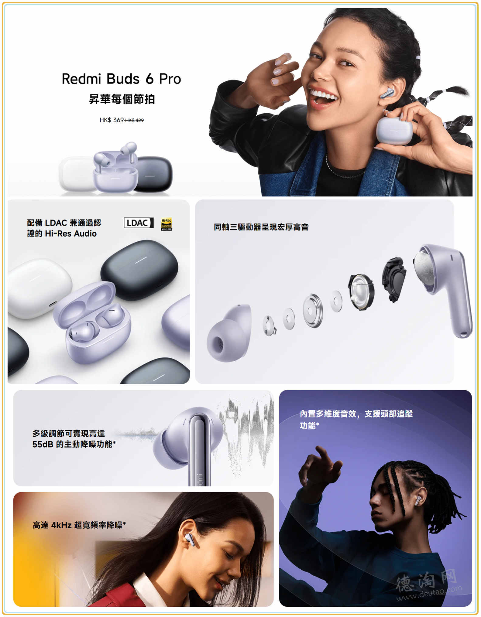 ★ 【REDMI红米 Buds 6 Pro无线蓝牙耳机 圣诞大促仅59欧!】 百欧内性价比之选!它采用薰衣草色设计,外形时尚轻巧便携,适合长时间佩戴。耳机内置了先进的主动降噪技术,可以有效消除背景噪声,提供清晰、纯净的音质主打同轴三驱动单元(6.7mm PZT高音 + 11mm钛动圈低音)带来均衡音质、高达55dB的降噪深度和可达4kHz的宽频降噪,支援LDAC编码和空间音讯,续航长达36小时。