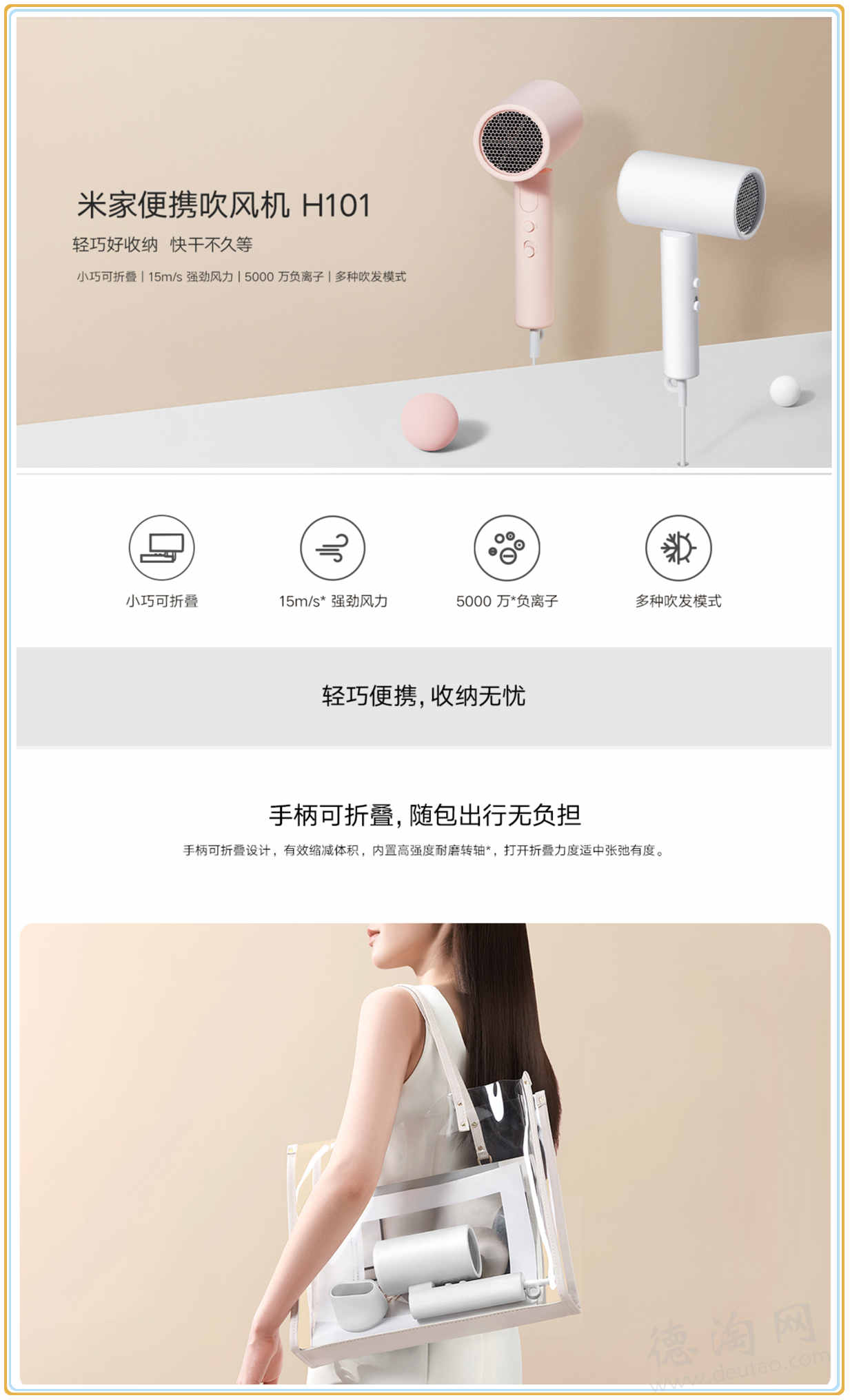 ★ 【Xiaomi小米 便携电吹风H101 圣诞大促仅9欧!】 小巧美丽颜值高,风量也是挺大的,吹干头发快 还有冷热风转换。内置了负离子,吹得快也不怕头发炸毛啦!拿着轻便手持吹风一点也不累,整体小巧出门带着贼方便。旅游出门也能带着,小小的不占空间!
