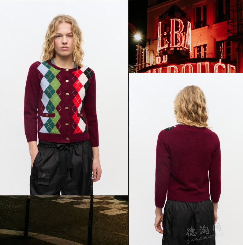 ❤【Ganni 酒红格纹针织开衫 黑五65折仅243欧!】 品牌热门款!选用70%美利奴羊毛 + 30%羊绒,柔软贴肤,温暖舒适。圆领设计与长袖剪裁,廓形利落,袖口与下摆罗纹收边,细节精致。多彩格纹拼接,复古中带俏皮感。适合叠穿衬衫或单穿搭配半裙、牛仔裤,轻松打造学院风与街头时髦感。