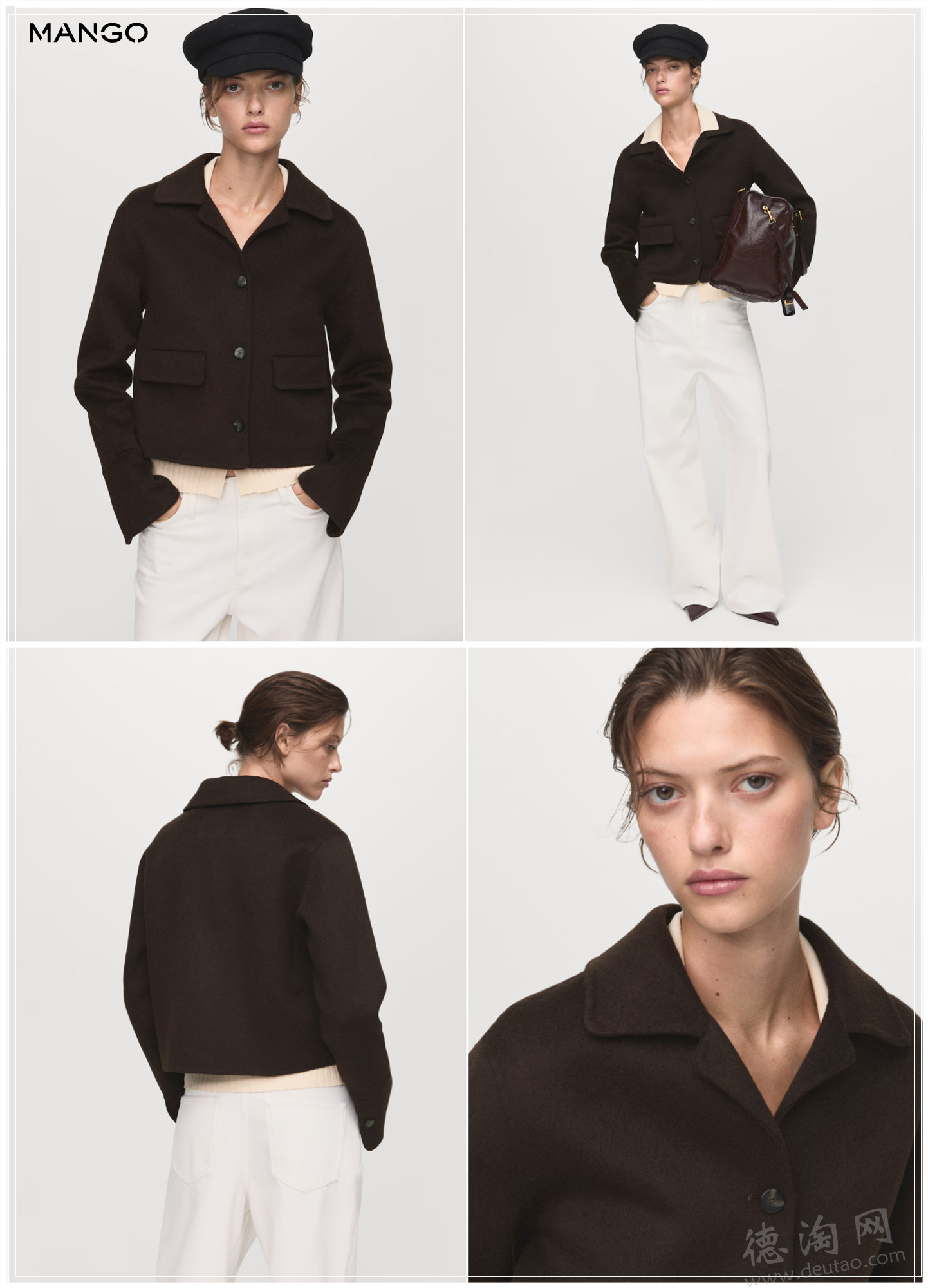 ❤【Mango 羊毛混纺短外套 折后仅65欧!】 高级英伦风!以优雅的直身廓形呈现都市轻奢格调。利落的衬衫式翻领与修长袖型相呼应,塑造出干净、克制却力量十足的轮廓。正面排扣设计经典耐看,精选羊毛52%的温暖混纺面料,触感柔和且具有结构感。搭配帽子真的绝了,十足出片!