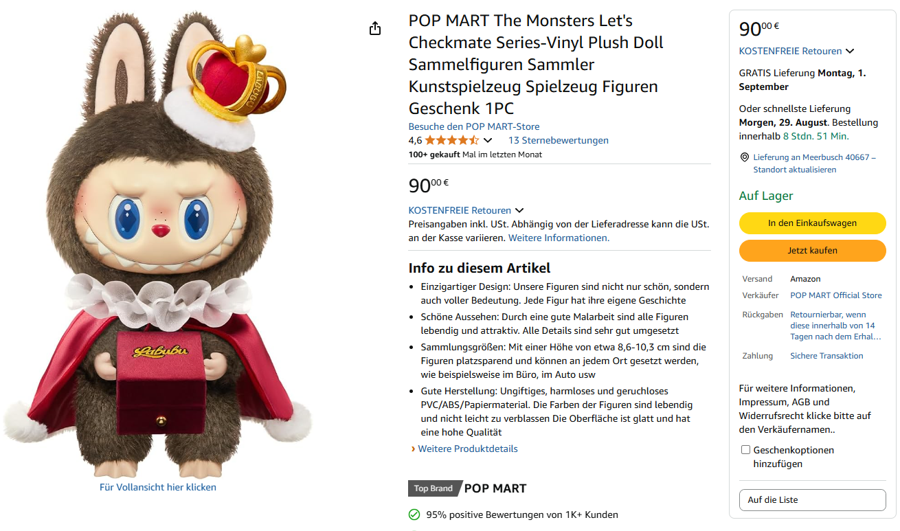快快快!!!超级难买的Labubu国王居然也有啦,而且是亚马逊官方店!