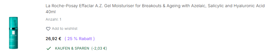 ❤【La Roche-Posay/理肤泉 Effaclar A.Z 凝胶面霜 折后仅26欧!】