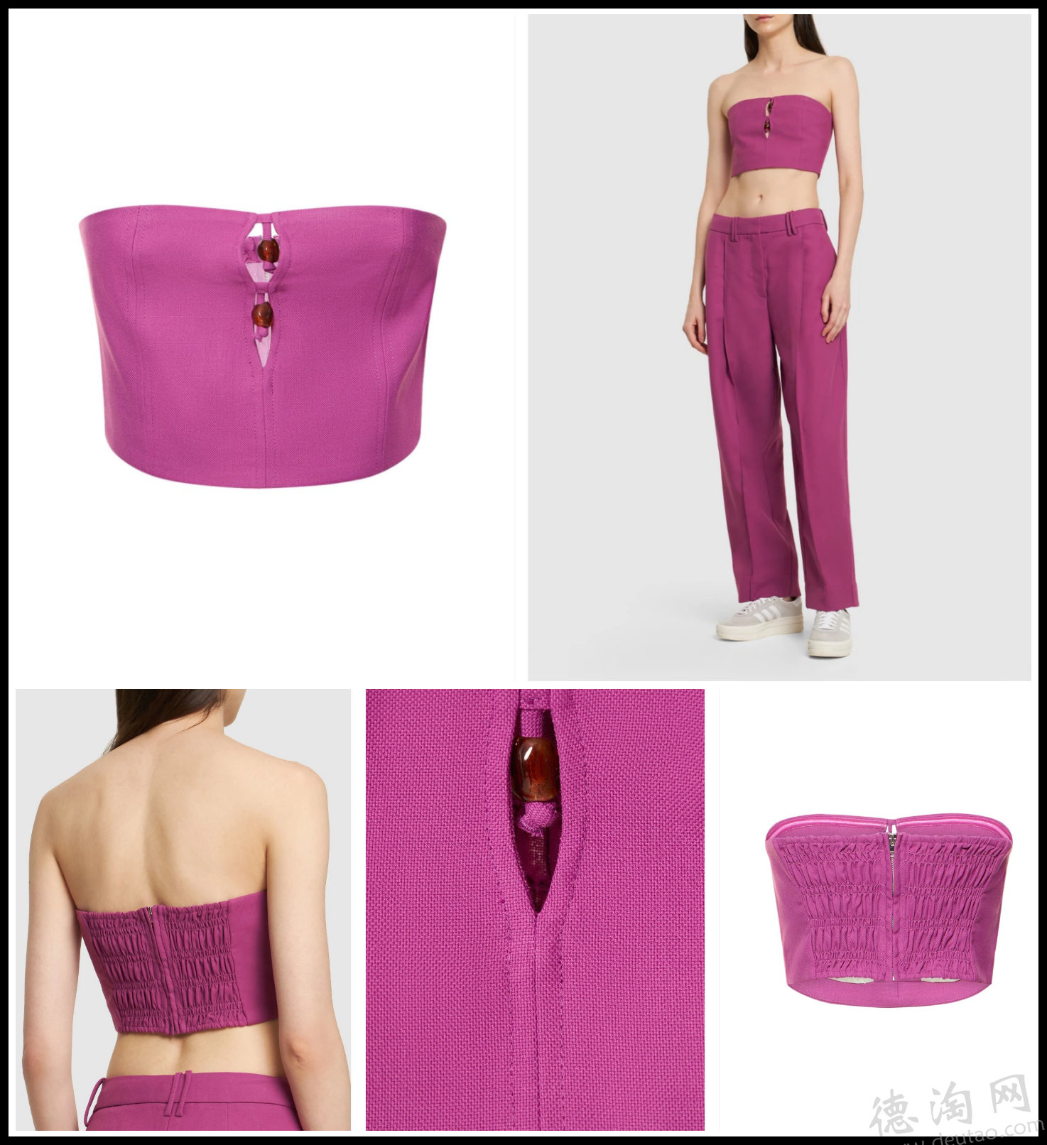 ❤【GANNI 钉珠玫红色抹胸上衣 折上折仅47欧!】 明亮的玫红色自带回头率,梦回千禧年代高饱和色,一出场就是时尚达人/大美女既视感,浓郁的色泽出片效果也超强!胸前串珠设计点亮细节,增强辨识度。抹胸剪裁凸显肩颈线条,背后打褶设计增加更多身材容错度。除了同色系裤子,更适合搭配西装裤、牛仔裙,即可单穿也可叠穿!