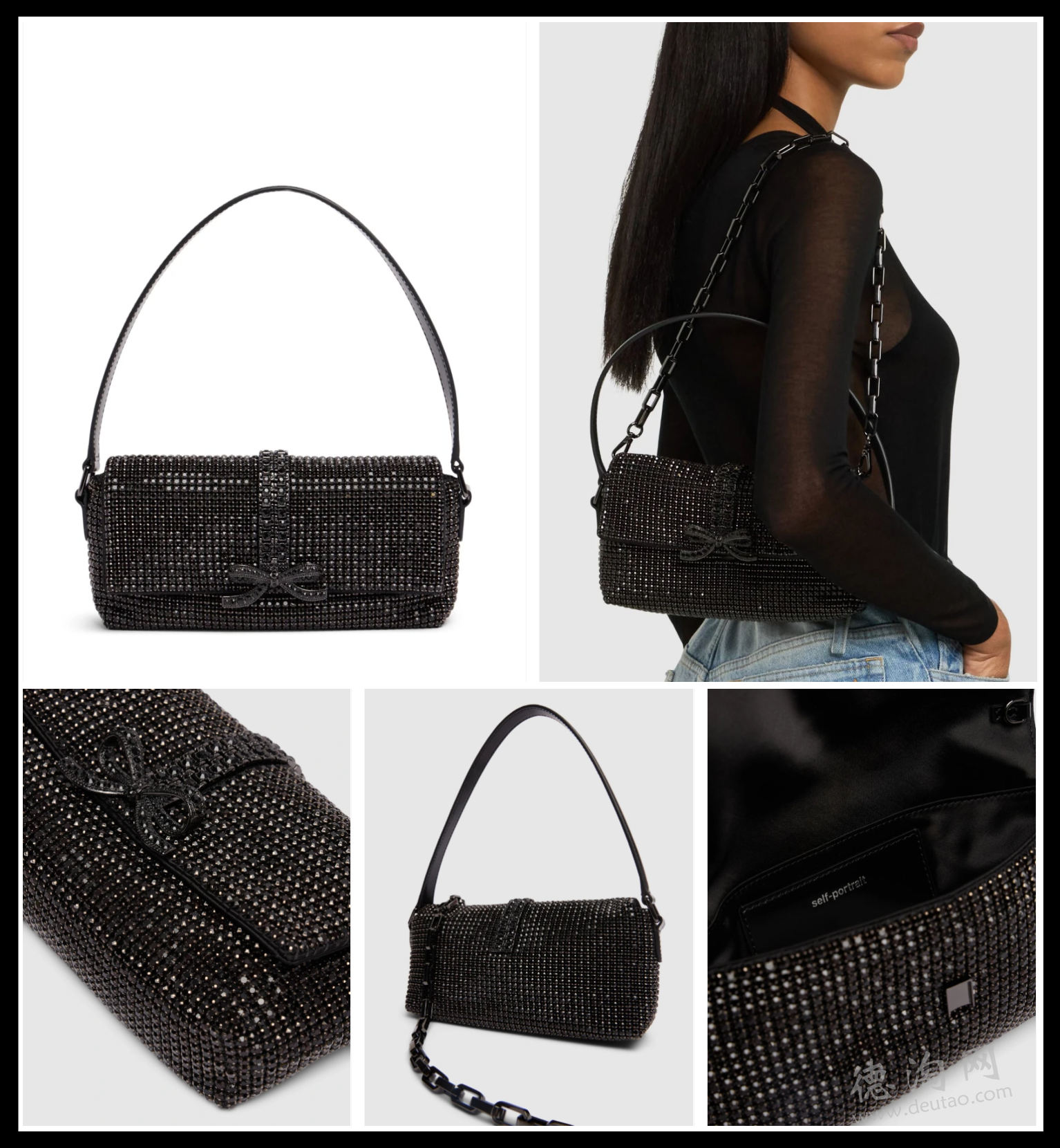 ❤【Self-portrait 水晶法棍包 折上折仅227欧!】 以其细长的形状和极简的轮廓而闻名,法棍形包像法棍面包一样夹在胳膊下!满镶黑色水晶的造型法棍包像一件精致的艺术品,铺满包身并延伸出灵动的蝴蝶结,点缀在包正面。更特别的是包带采用了锁链设计,打造甜美叛逆朋克的魅力!