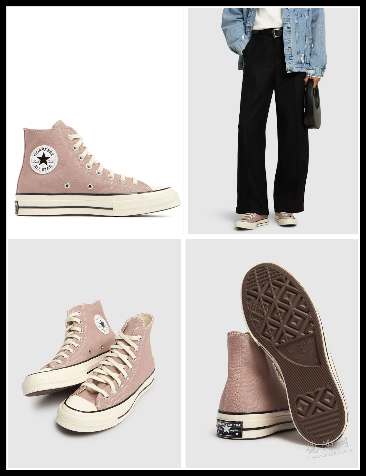 ❤【Converse Chuck 70灰粉色高帮 折上折仅46欧!】 浅豆沙色,也有点接近干枯玫瑰那个颜色!色调很丰富,不容易看腻,既有清新甜美可以搭配浅色系衣服,低饱和度让它也非常盐装酷没有违和感!鞋面是帆布设计,夏天穿的话直接短袜配短裤,与肤色接近的色调更有延长双腿的视觉效果!