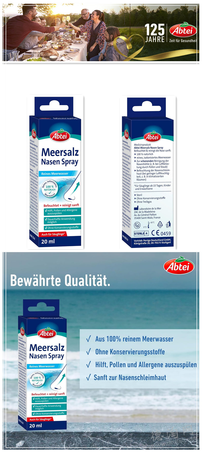【换季鼻子不舒服一定要常备一只!Abtei 海盐鼻喷雾20ml 亚马逊自营款特价仅3欧!!!】花粉季雨季冷热交替,暖气房飞机上,鼻子容易觉得囔囔的不舒服,哈欠想打也打不出来,那就一定要看看这只海盐鼻喷雾!超温和保湿成分,含有天然海盐水,能温和滋润鼻腔,缓解干燥。帮助清理鼻腔内的灰尘花粉,用完感觉鼻腔干净又清爽。孩子、大人都能安心日常使用,真正的亲子家庭常备。